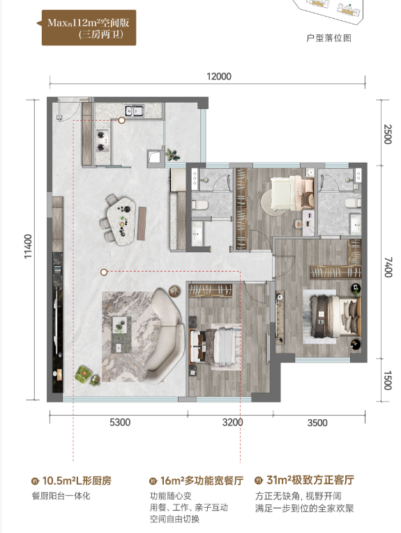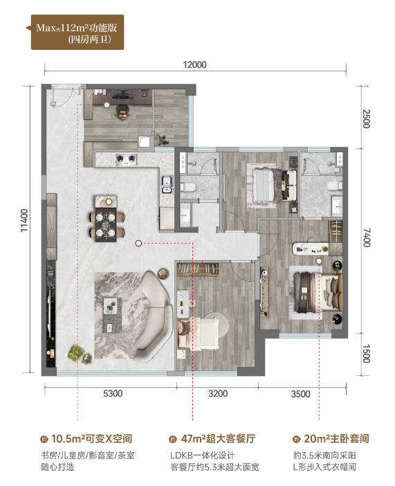 建筑面积: 112㎡(4房2厅2卫)