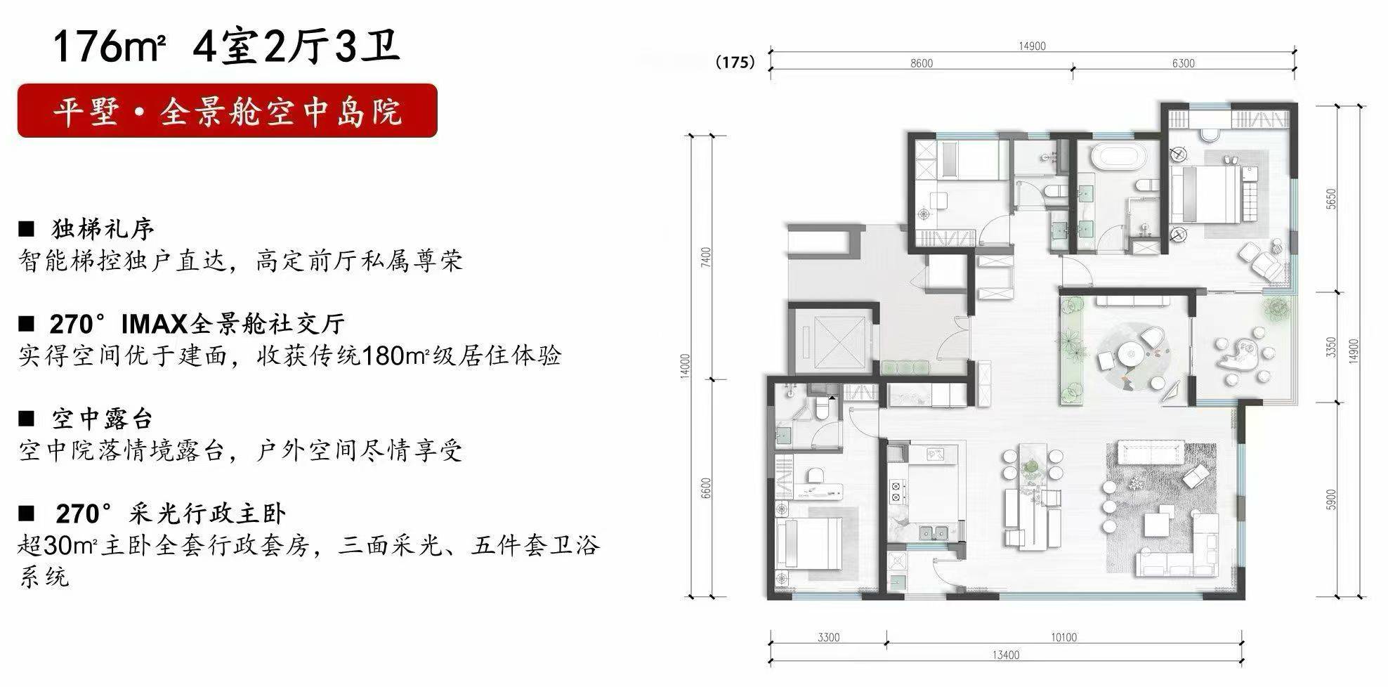 建筑面积: 176㎡(4房2厅3卫)